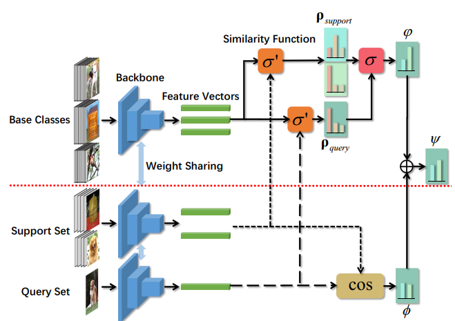 Given base classes with sufficient labeled samples, the target of few-shot classification is to recognize unlabeled samples of novel classes with only a few labeled samples. Most existing methods only pay attention to the relationship between labeled and unlabeled samples of novel classes, which do not make full use of information within base classes. In this paper, we make two contributions to investigate the few-shot classification problem. First, we report a simple and effective baseline trained on base classes in the way of traditional supervised learning, which can achieve comparable results to the state of the art. Second, based on the baseline, we propose a cooperative bi-path metric for classification, which leverages the correlations between base classes and novel classes to further improve the accuracy. Experiments on two widely used benchmarks show that our method is a simple and effective framework, and a new state of the art is established in the few-shot classification field.