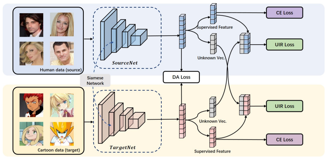 Recent years have witnessed increasing attention in cartoon media, powered by the strong demands of industrial applications. As the first step to understand this media, cartoon face recognition is a crucial but less-explored task with few datasets proposed. In this work, we first present a new challenging benchmark dataset, consisting of 389,678 images of 5,013 cartoon characters annotated with identity, bounding box, pose, and other auxiliary attributes. The dataset, named iCartoonFace, is currently the largest-scale, high-quality, richannotated, and spanning multiple occurrences in the field of image recognition, including near-duplications, occlusions, and appearance changes. In addition, we provide two types of annotations for cartoon media, i.e., face recognition, and face detection, with the help of a semi-automatic labeling algorithm. To further investigate this challenging dataset, we propose a multi-task domain adaptation approach that jointly utilizes the human and cartoon domain knowledge with three discriminative regularizations. We hence perform a benchmark analysis of the proposed dataset and verify the superiority of the proposed approach in the cartoon face recognition task. We believe this public availability will attract more research attention in broad practical application scenarios.